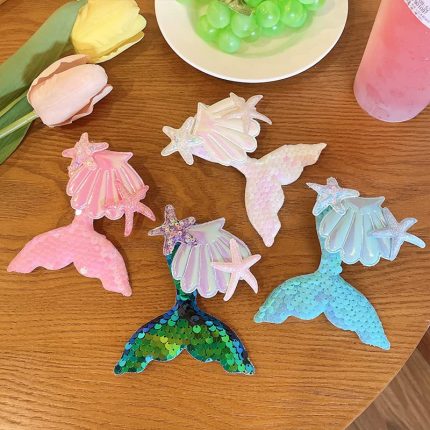 Samyak 4 Pcs Sequin Mermaid Seashell Cute Hair Cli…