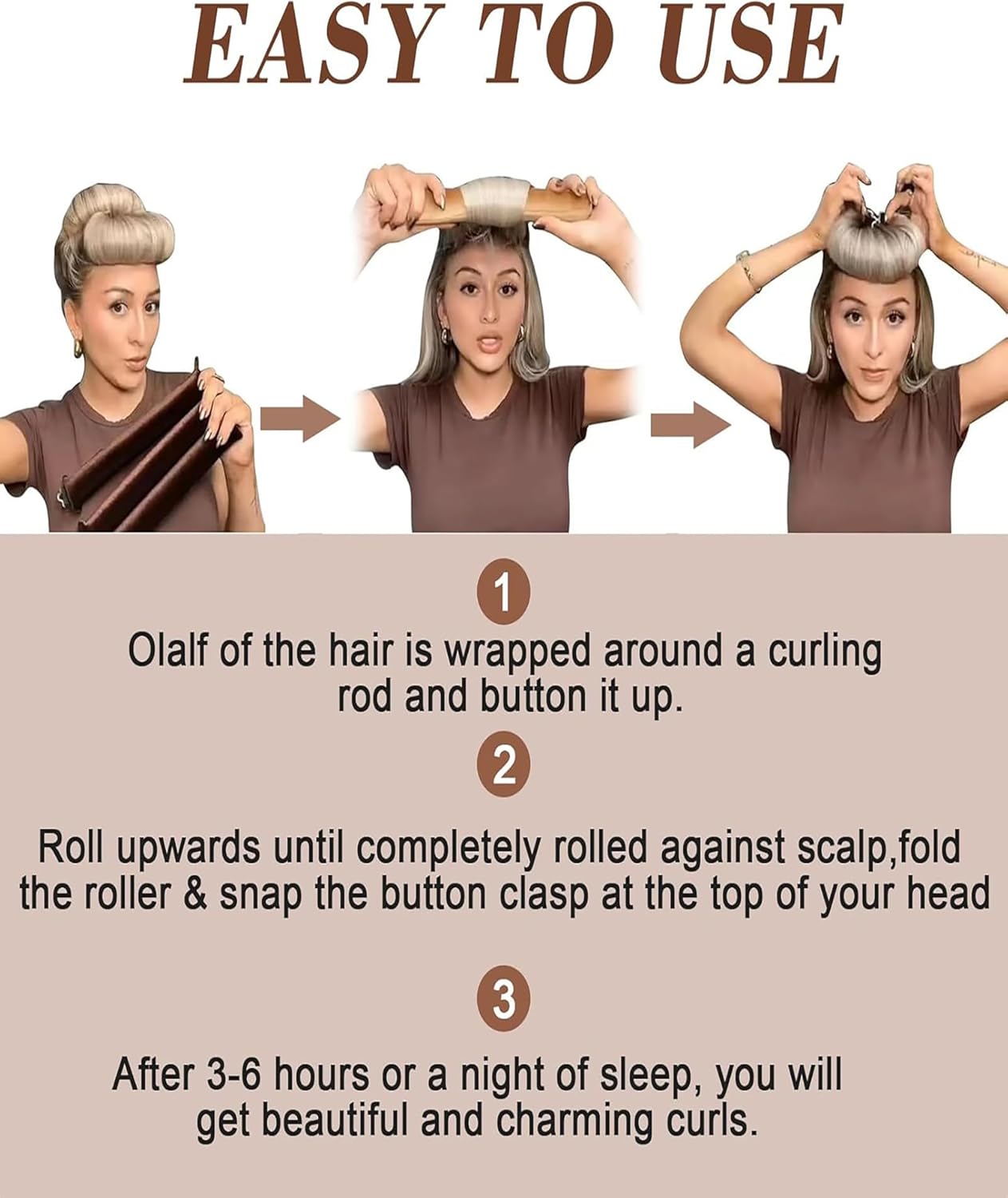 3- Step Simplicity: Heatless curls achieve salon-worthy hair overnight in 3 simple steps: 1) Apply a styling spray to dry hair for enhanced results. 2) Position the rod atop your head and twirl your hair around it, securing it with the provided hooks. 3) Enjoy your beauty sleep and awaken to flawless curls.