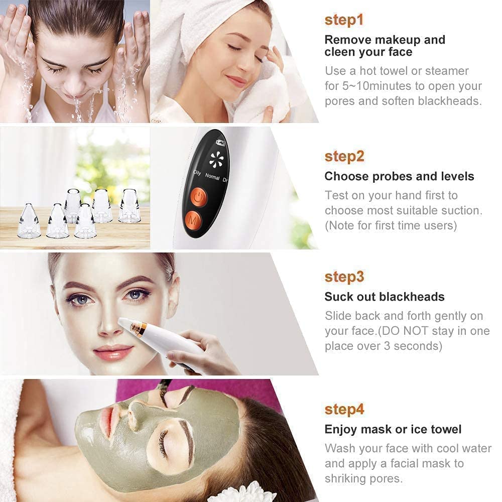 MULTI-FUNCTIONAL BLACKHEAD REMOVER & PORE CLEANER : In a safe healthy and pure physical way vacuum suction blackheads acne and oil do not harm the skin. this blackhead pore vacuum suction cleaner has a powerful suction that effectively removes blackheads, whiteheads, grease, dead skin and makeup residues, deeply cleanses the skin, removes dirt, promotes blood circulation and increases skin elasticity. after 2-5 weeks of continuous use, your skin will be firm, smooth and clean.