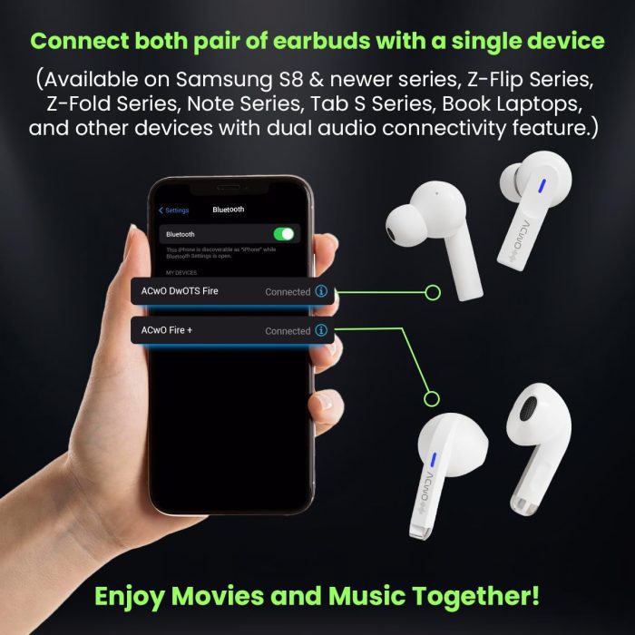 ✅[India’s First Dual Sharing TWS] : The dual sharing design allows you to share audio with a friend or loved one without sacrificing sound quality. Simply connect two sets of earbuds to the same device and enjoy synchronized audio playback simultaneously. Perfect for sharing music, movies, podcasts, and more, making it ideal for social gatherings or travel.