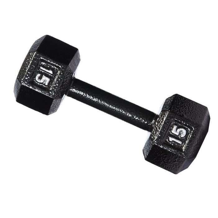 Dumbbell for resistance training—great for arms, chest, back, core, and legs Made of solid high-quality cast iron for reliable built-to-last strength Hexagon-shaped ends help prevent rolling and promote stay-in-place storage Ideal for fitness classes or a wide range of at-home workout routines Sold individually; weighs 6.8 KGS (15 pounds)