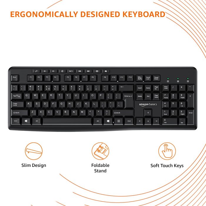 The Amazon Basics Wireless Keyboard and Mouse combo is the perfect package for all your computational needs. With an ergonomic design, you can now accomplish many hours of tasks comfortably. The combo provides a seamless wireless connection up to 33 ft. It is compact and ideal for both left-hand and right-hand users. The smooth cursor enables easy navigation. As the combo is spill-resistant you can eat and drink around it without worrying about spilling and damaging the products. They have 8 multimedia and shortcut buttons which make navigation easier. The keys of the keyboard do not produce much noise and provide a comfortable typing experience.