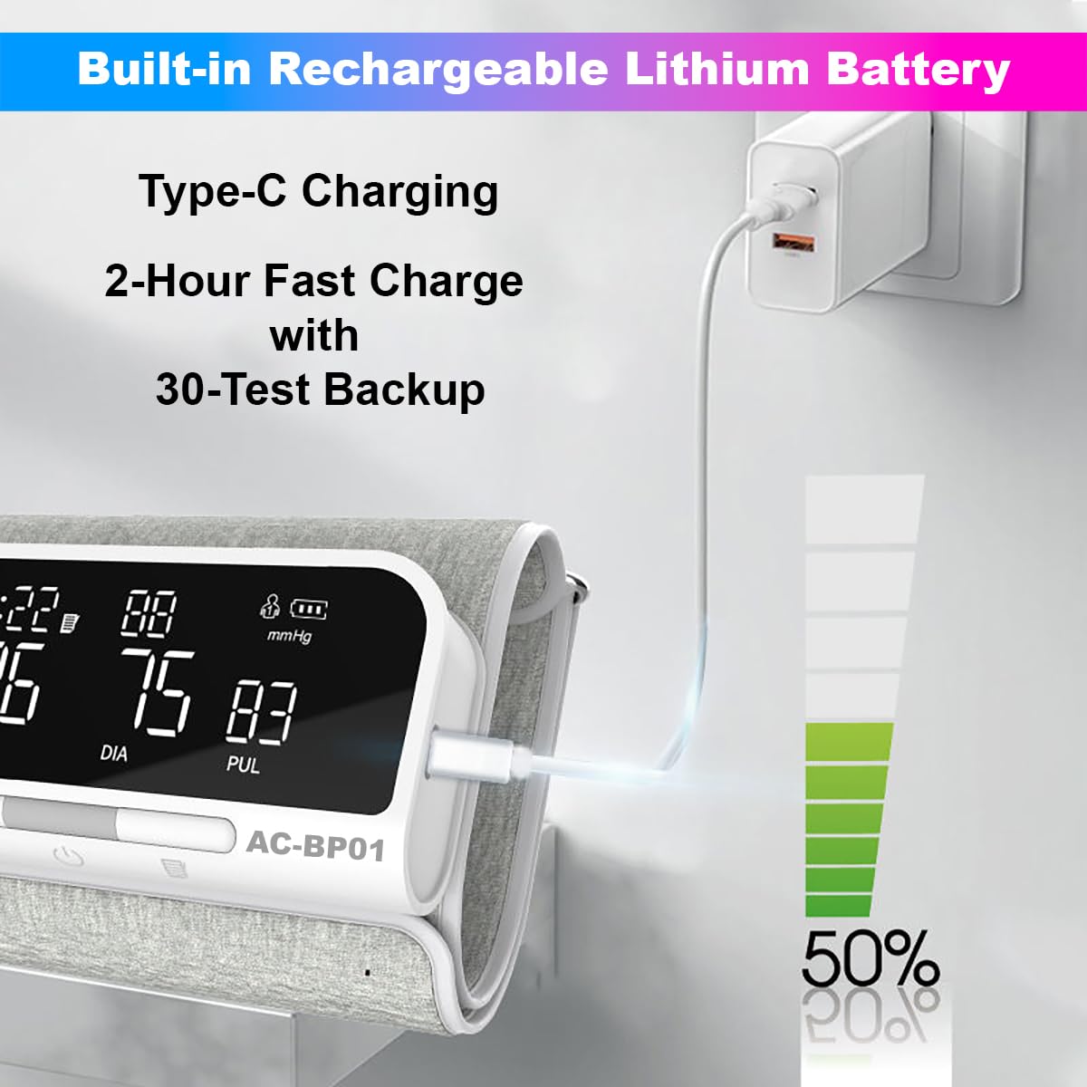 Tubeless and Rechargeable: – An innovative sphygmomanometer that stands out for its hassle-free testing. Unlike traditional monitors, the device is Type-C rechargeable and it doesn’t require hoses or cables, providing a convenient user experience and clinically accurate data.