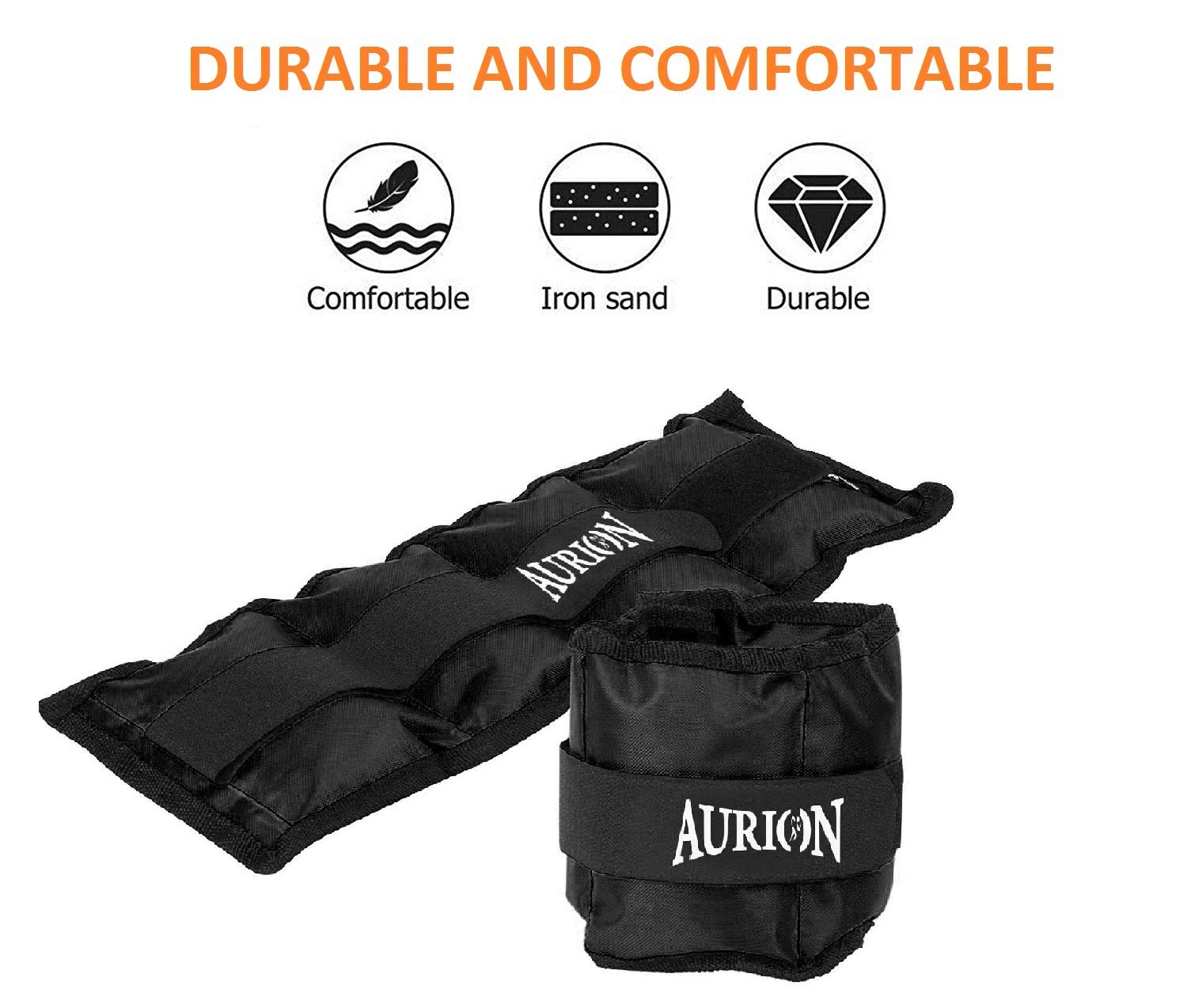 Material: The wrist and ankle weights are made from skin-friendly polyester material. They come with a velcro closure which ensures the weights do not shift or slide during motion. This also provides durability as the reinforced stitching will prevent the velcro from becoming undone. Filled with a mix of iron and sand, they come in a variety of fixed weight options.