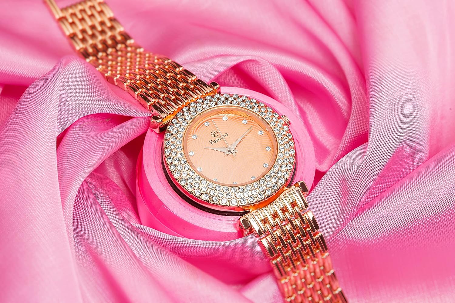 ♥ Wrist watch: This is a Rose Gold Color Watch with Diamonds and round dial. It has quartz movement that provides long-lasting and reliable timekeeping. Featuring a 34 millimeter case diameter, 12 millimeter band width, 8 millimeter ultra-thin round dial, hardened scratch-resistant mineral crystal glass, stainless steel case material, 3 hand analogue Japanese quartz movement, rose gold color, strong closure that ensures not to slip-off.