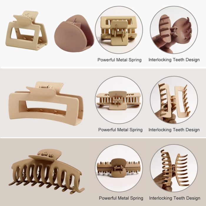 Matte Finish – These large claw clips offer a soft matte material with a rubberizing coating that doesn’t snag or slip out of your hair. The perfect addition to your hair styling accessories.