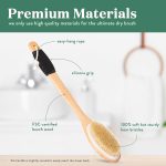 EXTRA LONG HANDLE SHOWER BRUSH – This dry brush body exfoliator has a 17″ long handle for those hard to reach areas. It also has an ergonomic design with a slight curve to easily reach your back with this body brush. This exfoliating brush has a silicone sleeve on the handle for anti-slip grip and a hang loop to dry.