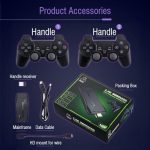 Smart Game Chip: wireless TV game console built-in more than 10000 Games,more than 9 Emulators are installed , and a 64GBTF card is attached which support you to game search functions, and can save/read game records.Use upgraded game chips to support 8-bit, 16-bit, 32-bit, 64-bit, 128-bit emulators. It perfectly meets your needs for image quality and game fluency.