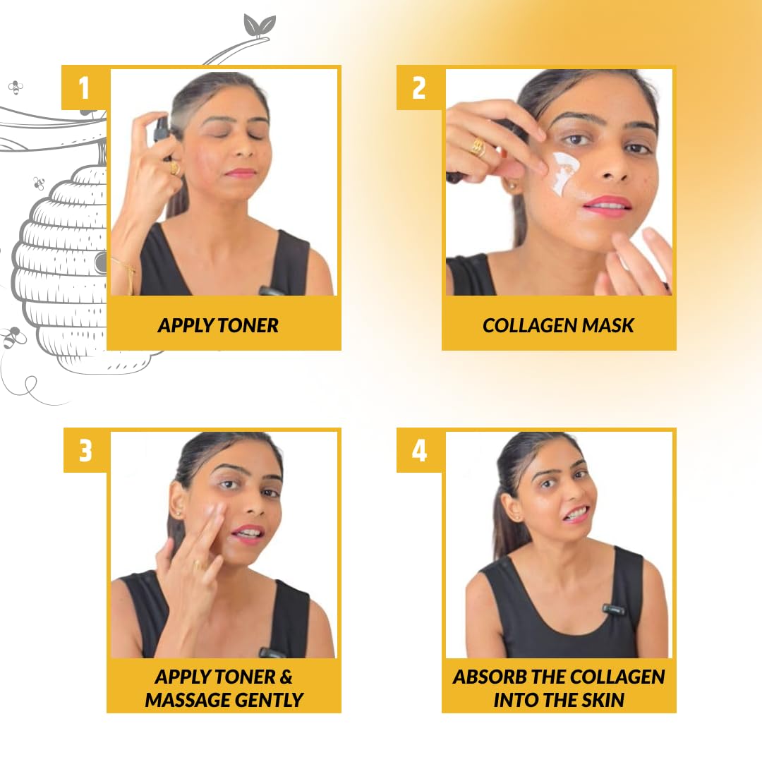 Included Components : 2 Face Packs of collagen + Niacinamide & Honey Toner.