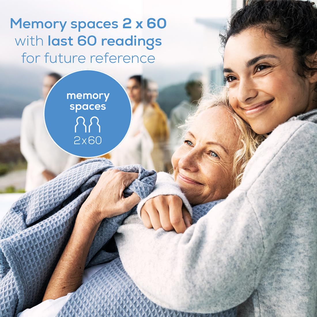 VERSATILE FEATURES: Multiuser (2 ppl) memory of 60 readings each, BP level indicator, Irregular heartbeat indicator, Body movement indicator, Error & low battery indicator