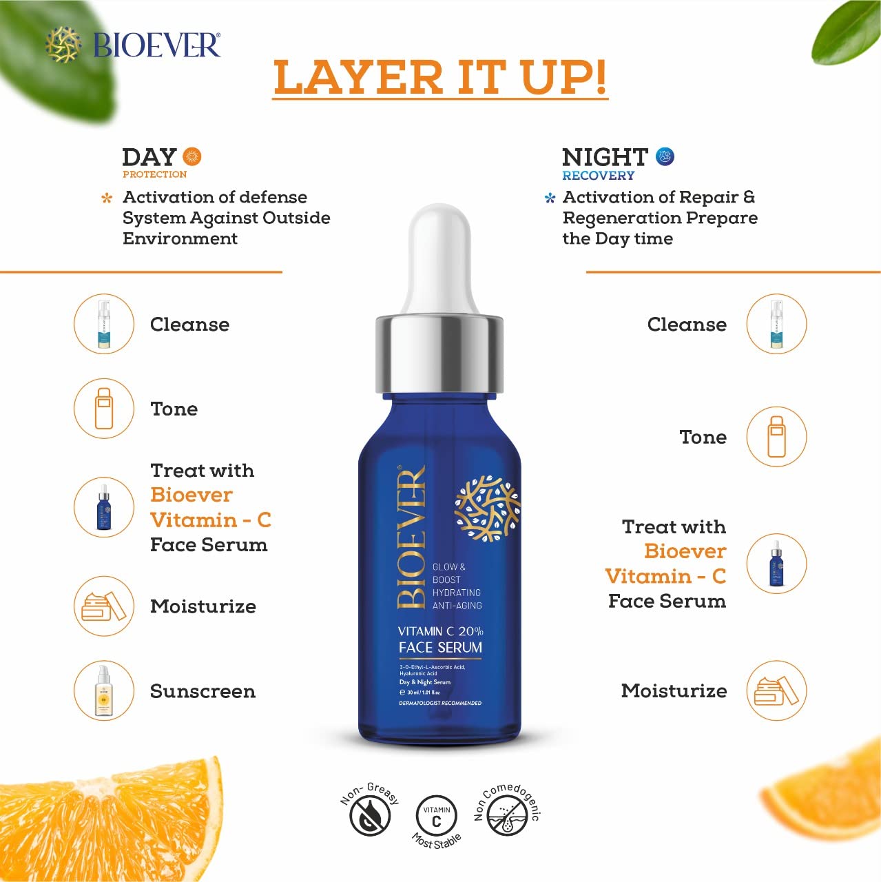 Twice Daily Use – For optimal results, apply Bioever Vitamin C Serum to your face twice daily, morning and night, to maximize its effectiveness in brightening and revitalizing your skin.