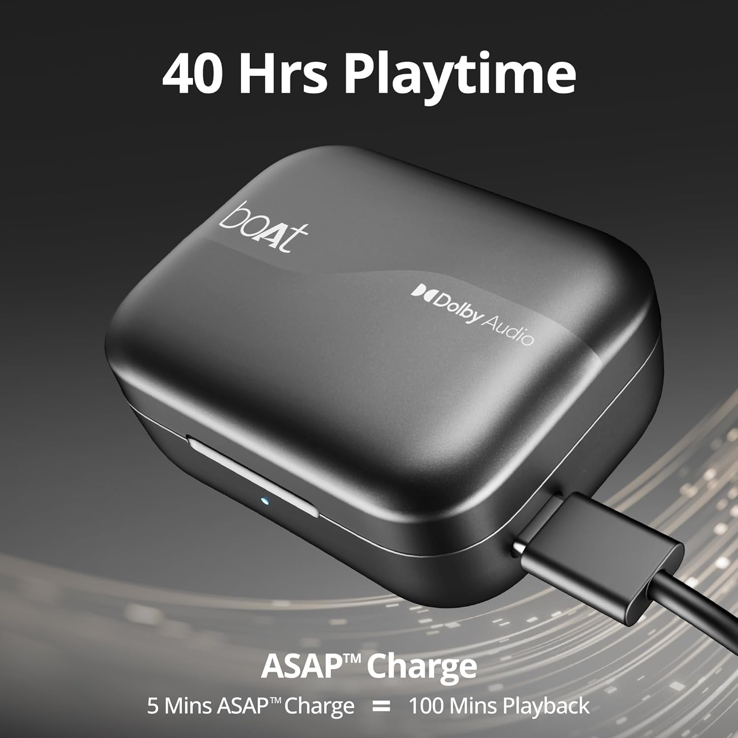 boAt Fast Pair & Bluetooth v5.3: Stream your most loved web series, call your loved ones, or play games with your squad with matchless connectivity. boAt Fast Pair speeds up the initial and subsequent pairing of these earbuds with your media devices for instant audio fun. Using Bluetooth v5.3, these earbuds keep you connected wirelessly for up to 10 m. So, you can watch movies or speak on calls with heightened wireless comfort while commuting.