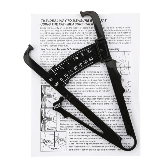 This body fat measuring tool and body measuring tape is small, light, discrete, fits in your gym bag, even pocket. This caliper gives you the same accurate results as other body fat measurement devices but low-cost.