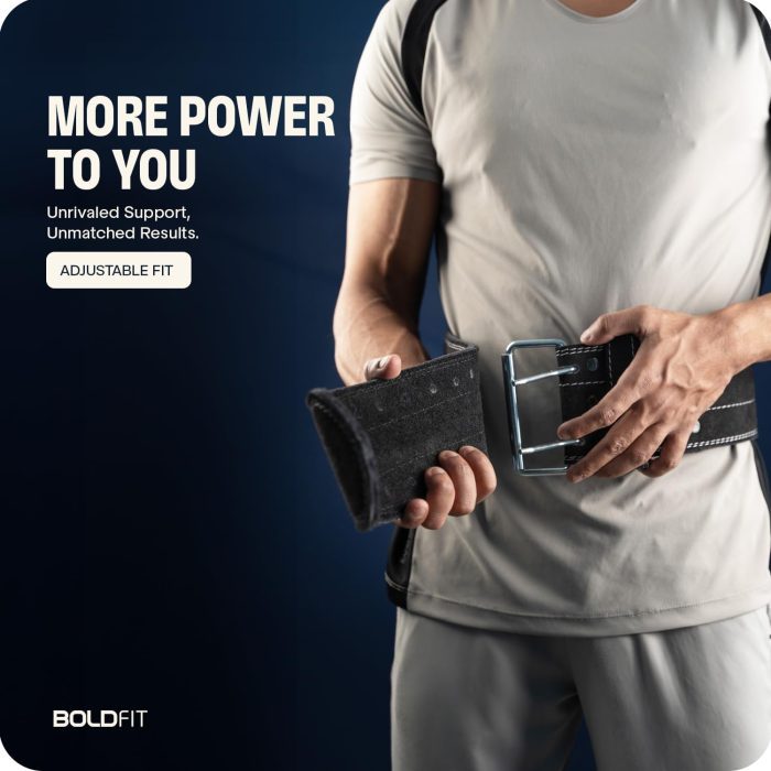 LOWER BACK SUPPORT: Squats and deadlifts when done in an improper form can lead to lower back injuries. Boldfit belt for gym workout for men helps support lower back during heavy weights, and can provide an injury-free and pain-free workout session. It helps alleviate the stress put on the lower back during these exercises, keeping you safe and secure. Alleviate the stress on your lower back during these exercises, ensuring a secure and protected fitness journey.