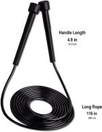 Maximum Comfort: The jump rope constructed with light weight ergonomic handles, It is made of PVC and polyethylene, a lightweight and durable material that can be used on several indoor and outdoor surfaces such as wood, asphalt, sand, grass, and others.