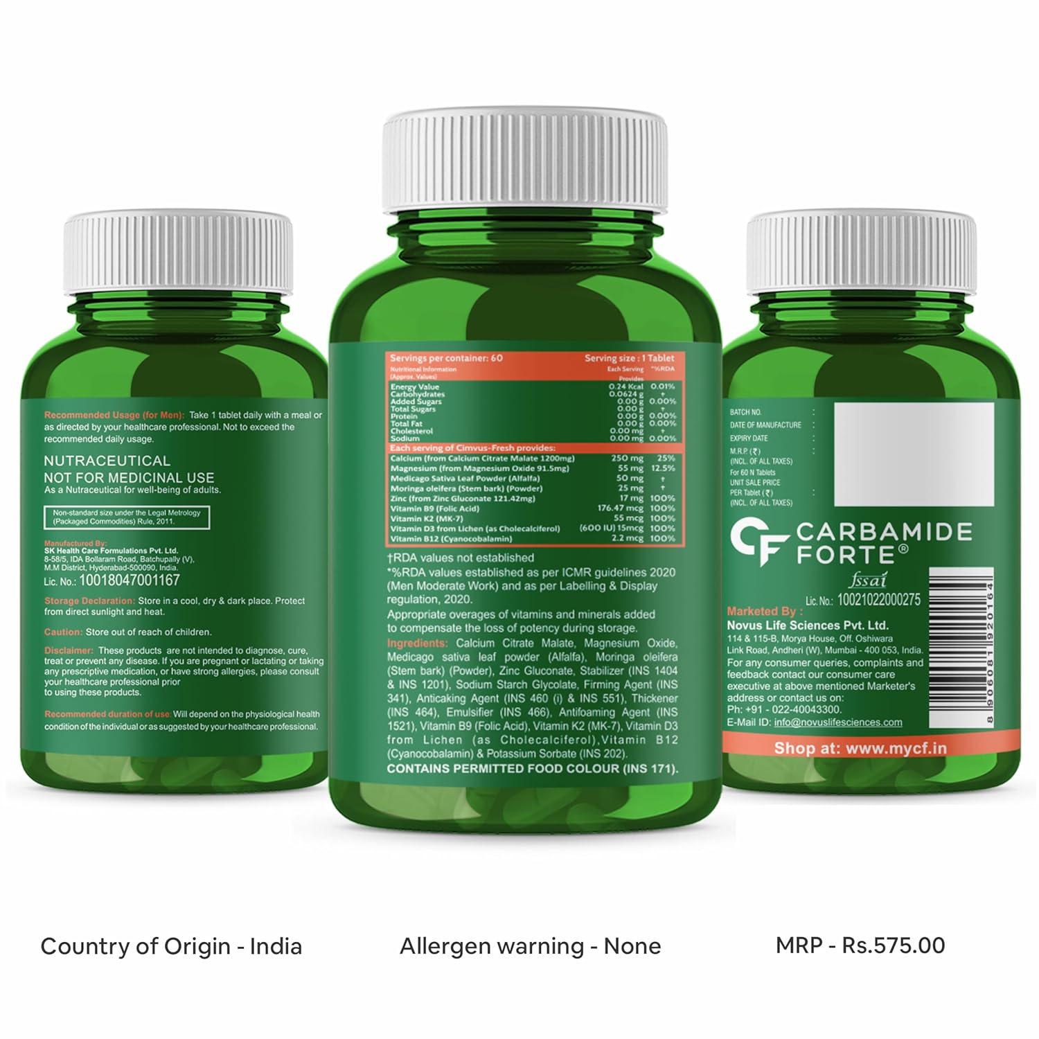 ✔ 2.5 TIMES BETTER ABSORBED CALCIUM SUPPLEMENT FOR WOMEN & MEN: You get 1200mg of Calcium Citrate Malate per tablet which is a WATER SOLUBLE CALCIUM and thus is a more Bioavailable form of Calcium than Calcium Carbonate. Calcium Citrate Malate is thus absorbed most easily by the body as compared to other Calcium Salts like Calcium Carbonate. Does not cause Bloating or Calcium Deposits with long term usage.