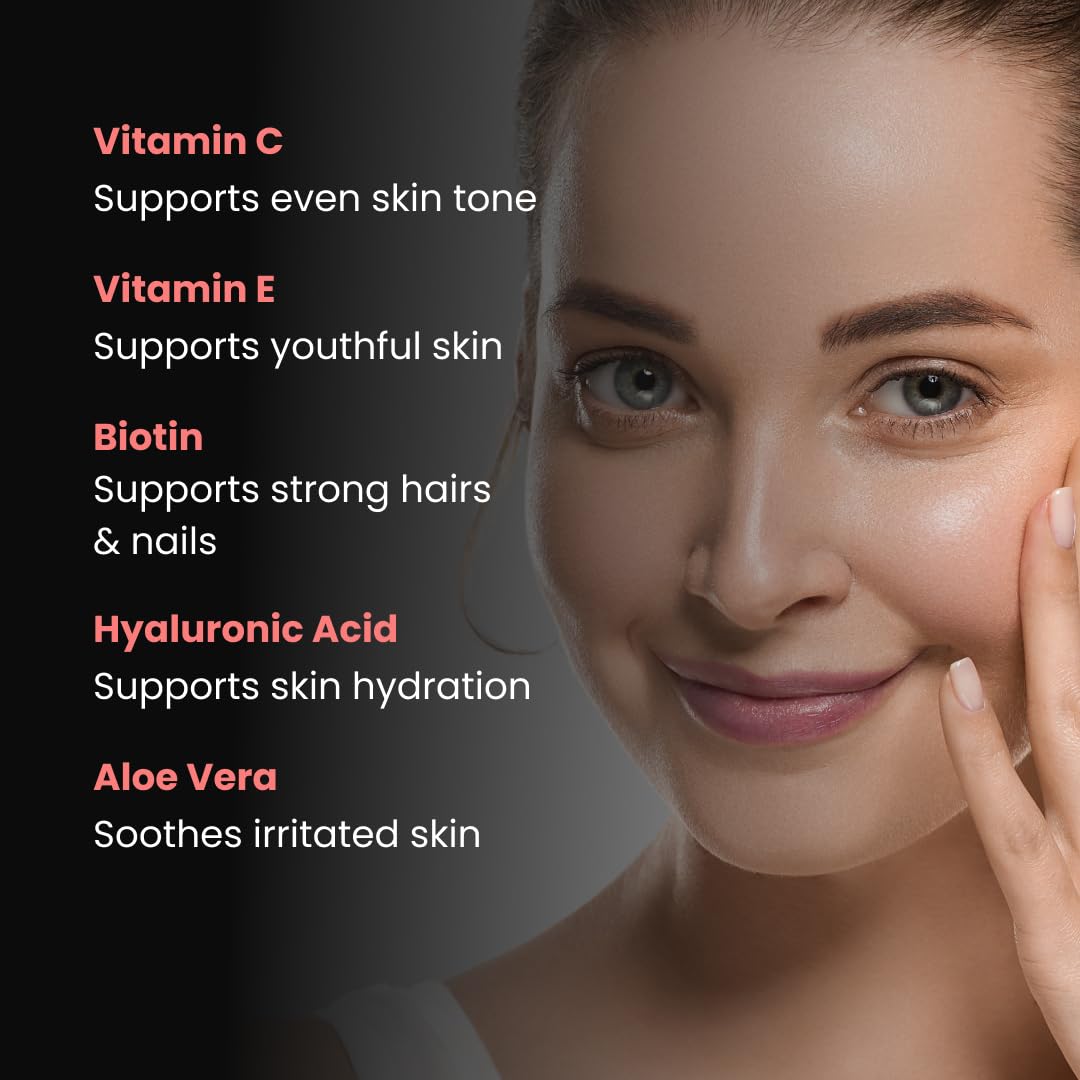 ✅ 𝐂𝐎𝐌𝐏𝐑𝐄𝐇𝐄𝐍𝐒𝐈𝐕𝐄 𝐇𝐄𝐀𝐋𝐓𝐇 & 𝐁𝐄𝐀𝐔𝐓𝐘 𝐒𝐔𝐏𝐏𝐎𝐑𝐓 𝐖𝐈𝐓𝐇 𝐎𝐔𝐑 𝐂𝐎𝐋𝐋𝐀𝐆𝐄𝐍 𝐒𝐔𝐏𝐏𝐋𝐄𝐌𝐄𝐍𝐓: Our multi collagen complex includes Aloe Vera Powder, which supports digestive health and has anti-inflammatory properties, and Hyaluronic Acid, which maintains skin hydration and joint lubrication , known as skin supplements for glowing skin. It also contains Vitamin C for immune function and skin health, and Biotin to support healthy hair, skin, and nails. This combination ensures comprehensive support for overall health, beauty, and well-being.