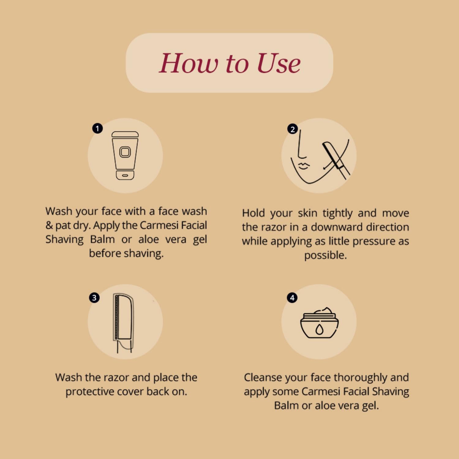 If you’re a newbie, you could start by using Carmesi Sensitive Sanitary Pads and Carmesi Facial Razor. Carmesi Sensitive is India’s only pad that has been certified 100% rash-free by Gynaecologist. Carmesi Facial Razor, on the other hand, is an award-winning Razor which helps remove facial hair instantly and painlessly.