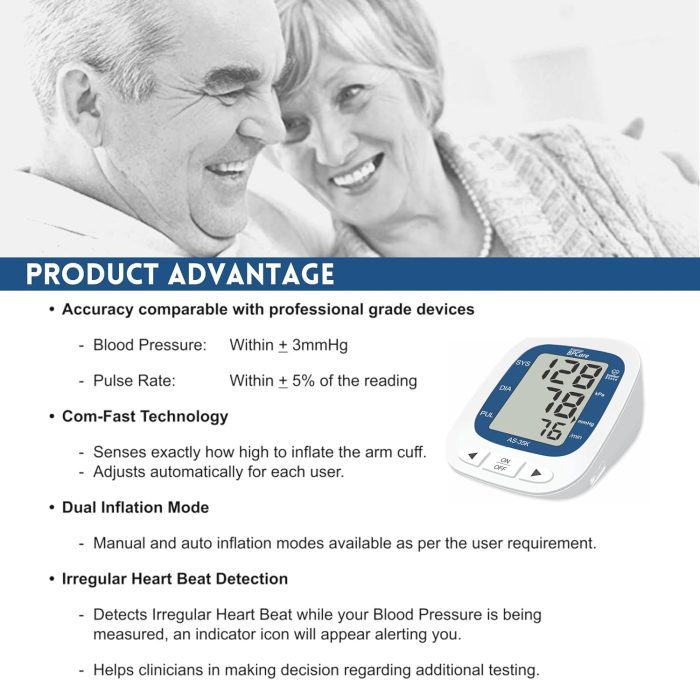 - Smart Inflation: Smart Inflation technology gives a more comfortable and faster measurement by eliminating any unnecessary over-inflation of the cuff. Approved for India with certificates of ISO, CE and SGS Test reports.