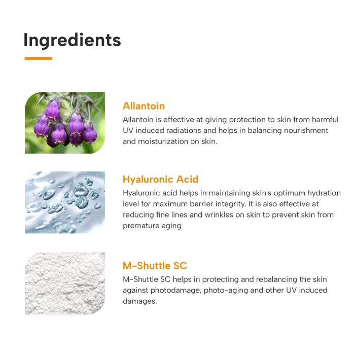 ✅ ANTI-AGING FORMULA: The key actives used in this formulation help to reduce fine lines and wrinkles and thus helping in preventing the skin from premature aging due to sun exposure.