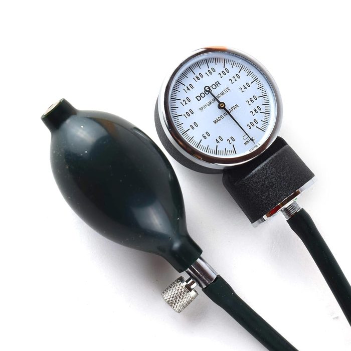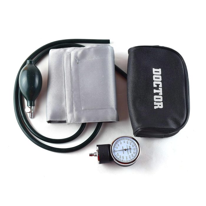Sphygmomanometer manual: It includes an aneroid meter and an animatronic cuff to introduce an inflation system to measure systolic and diastolic BP through a manually controlled valve.