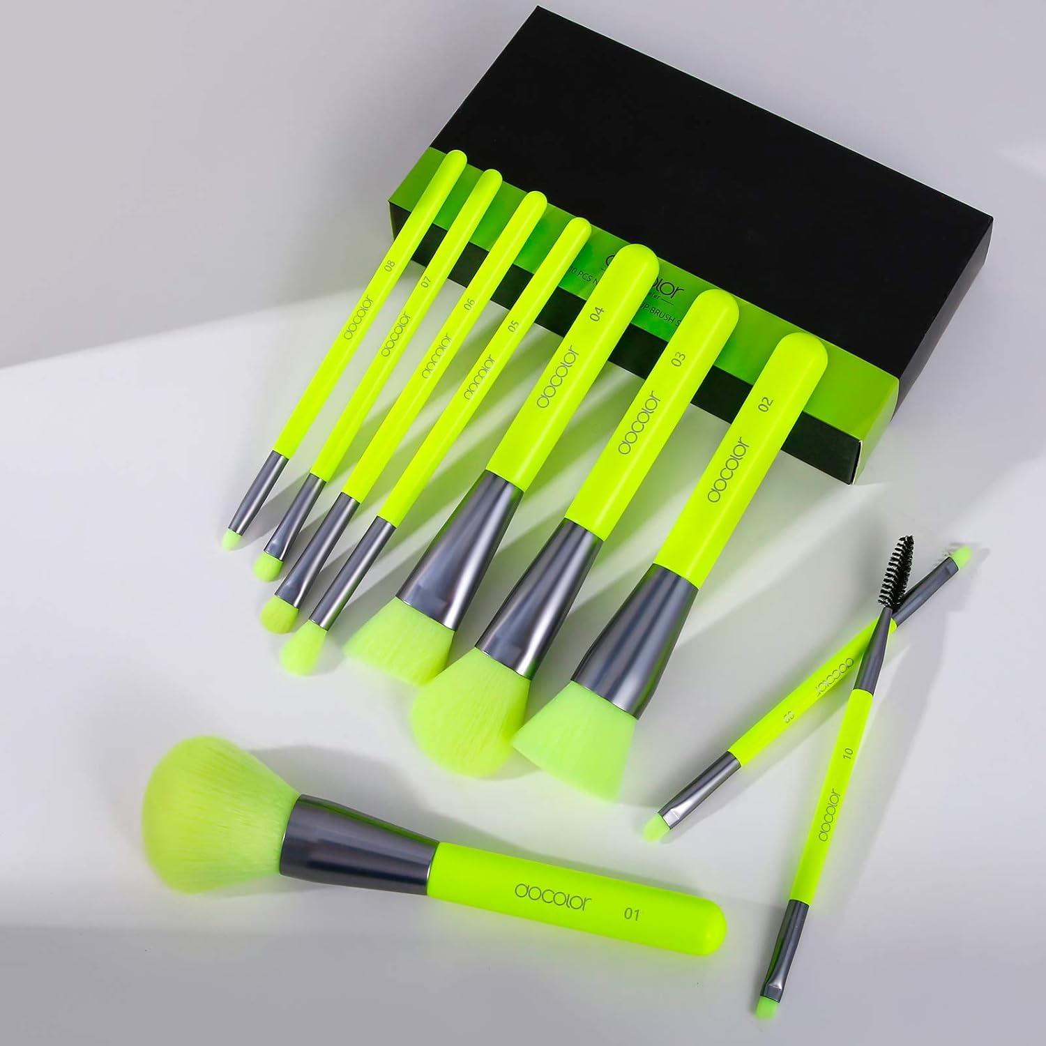𝐒𝐭𝐲𝐥𝐢𝐬𝐡 𝐃𝐞𝐬𝐢𝐠𝐧:The Docolor makeup brush set exudes a chic and fashionable vibe with its trendy and distinctive neon green color, making it a must-have addition to your cosmetic collection.