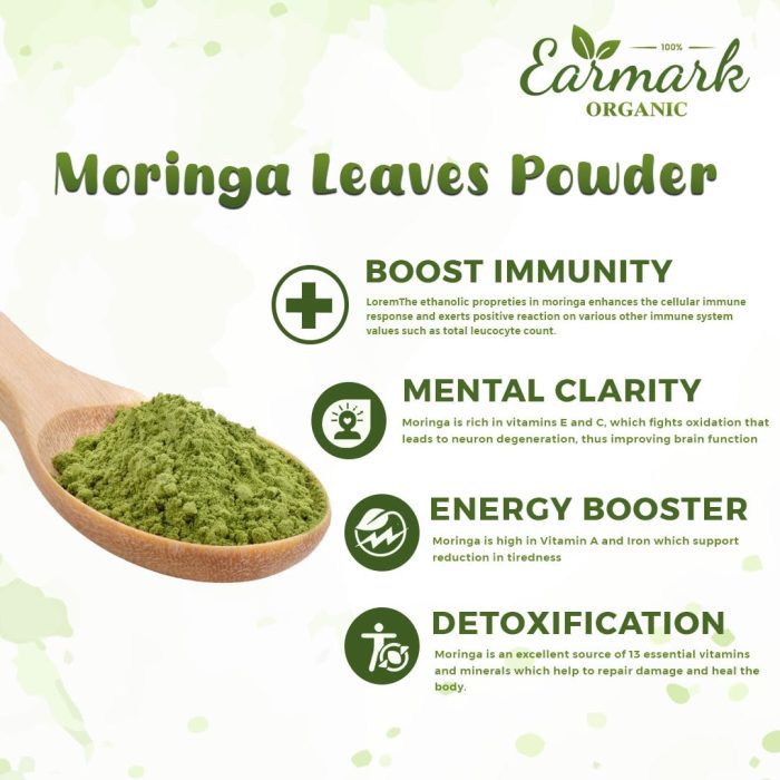 Nutritious Superfood: Moringa leaf powder is a nutrient-dense superfood packed with vitamins, minerals, antioxidants, and plant compounds.