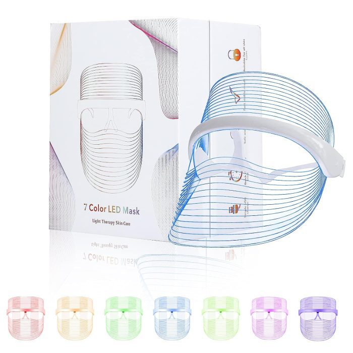 Multifunctional and Easy to Use-L E D face mask light therapy with 7 colors L E D light of red, blue,orange,green,purple,light purple and cyan, it improves the skin. The transparent, lightweight design satisfies you to do more things you want to do while skin care