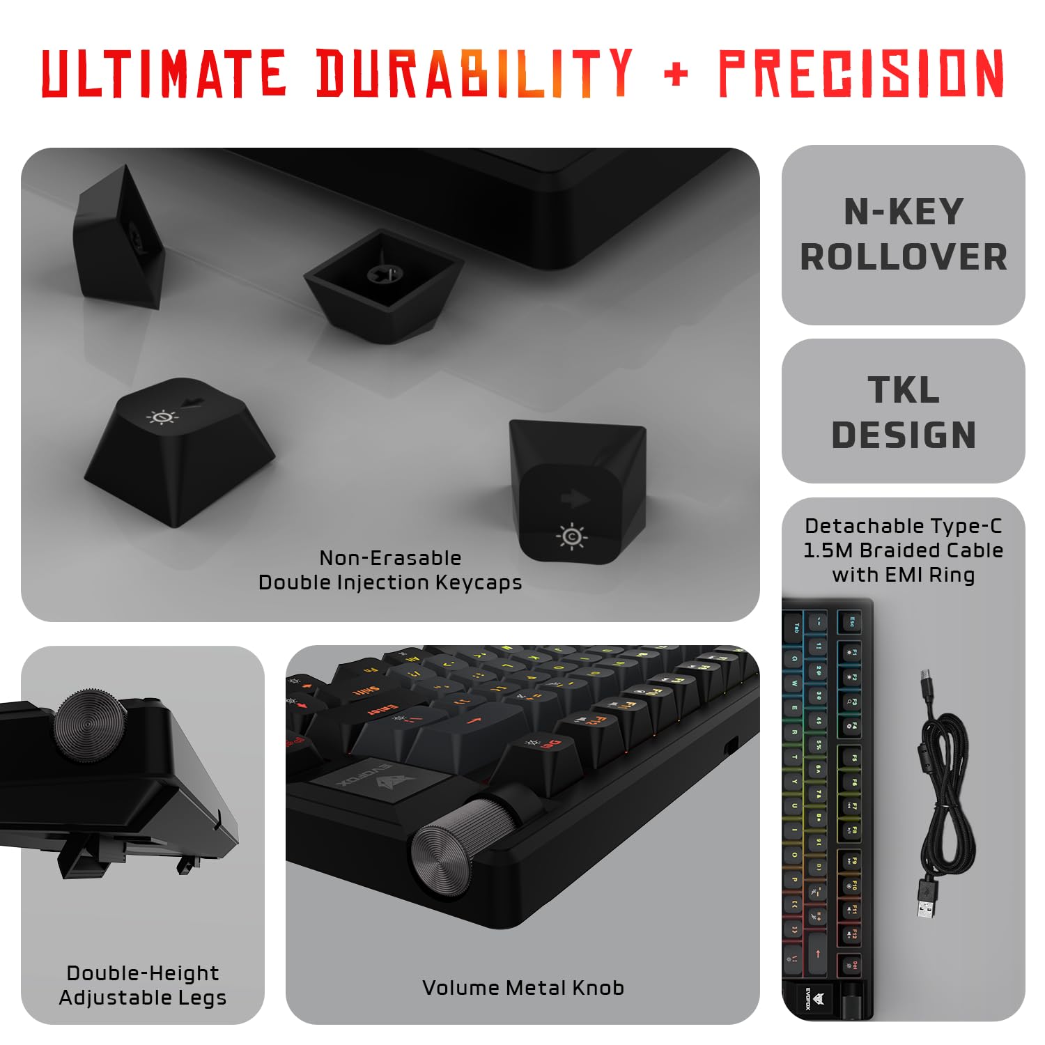𝗣𝗿𝗶𝘀𝗺 𝗥𝗚𝗕 𝗕𝗮𝗰𝗸𝗹𝗶𝗴𝗵𝘁𝗶𝗻𝗴 : Per key RGB backlighting with 21 effects and “Audio Sync Mode” for a personalized and immersive setup.
