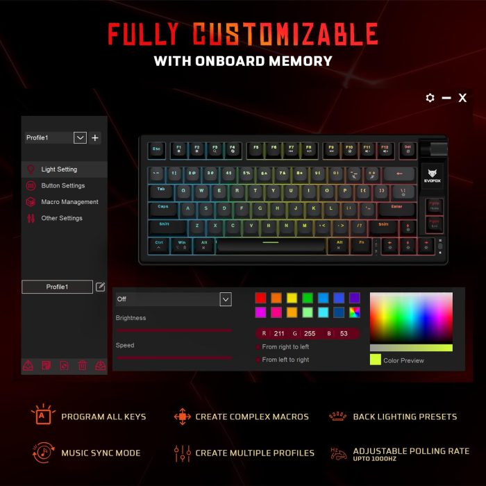 𝗣𝗼𝘄𝗲𝗿𝗳𝘂𝗹 𝗦𝗼𝗳𝘁𝘄𝗮𝗿𝗲: Advanced Windows software with on-board memory for complete customization, enabling users to program keys, create macros, control backlighting effects, and manage profiles for ultimate control.