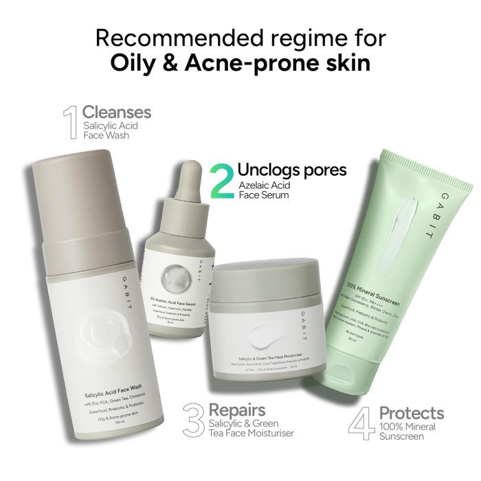 Gabit’s 5% Azelaic Acid for acne and oil control. Reduces breakouts, inflammation and acne marks. Gently exfoliates, unclogs pores and calms redness. Packed with potent ingredients like Azelaic, Salicylic, Mandelic, Hyaluronic, Green Tea, Cinnamon Bark, Betaine, Prebiotics & Probiotics.