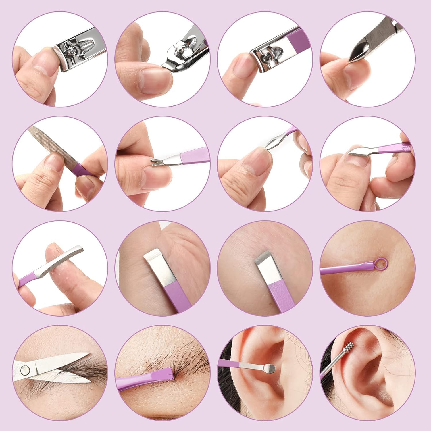 ➜ The function of most nail clipper sets is centered on trimming nails while our kit has a variety of functions including hand care, foot care, and facial treatment. the new tools include a mini nail clipper for kids, an acne bowl needle, and a spiral ear spoon that can meet all kinds of care needs in daily life.
