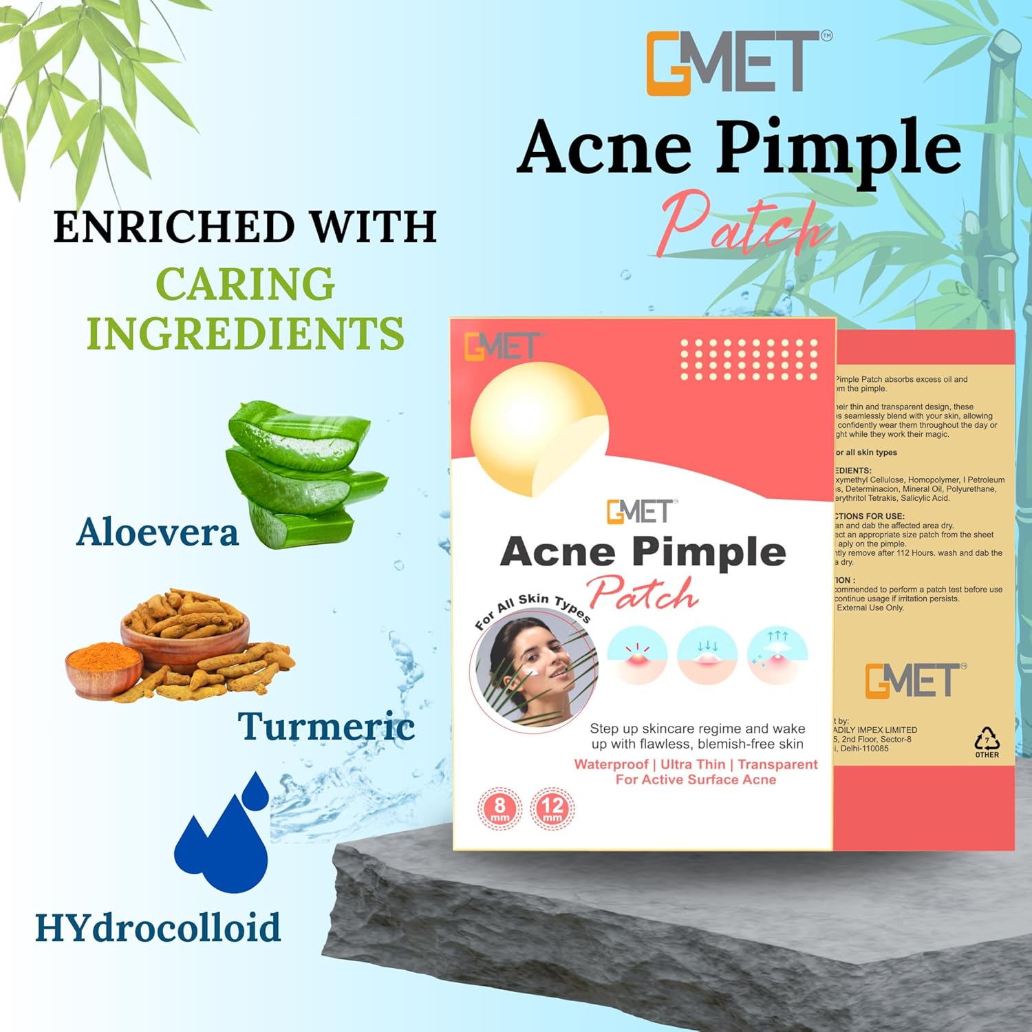 Introducing GMET Facial Pimple Patches, a targeted solution for active surface acne. These transparent skin stickers are infused with 0.5% Salicylic Acid, known for its effective acne-fighting properties. Applied overnight, these patches work to absorb excess oil and promote a reduction in the appearance of pimples. Crafted with hydrocolloid material, these waterproof patches create a protective barrier that aids in the healing process. The transparent design seamlessly blends into your skin, providing discreet coverage for daytime use. Suitable for all skin types, GMET Facial Pimple Patches offer a convenient and effective way to address blemishes, promoting a clearer complexion. Elevate your skincare routine with these patches that combine innovation, convenience, and compatibility with various skin types. Say goodbye to unwanted blemishes and embrace the confidence of visibly clearer skin.