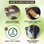 FOR HAIR: Soak Godrej Nupur Henna in lukewarm water for 2 – 3 hours. Apply evenly from root to tip. Leave it for 3-4 hours and then rinse thoroughly with water