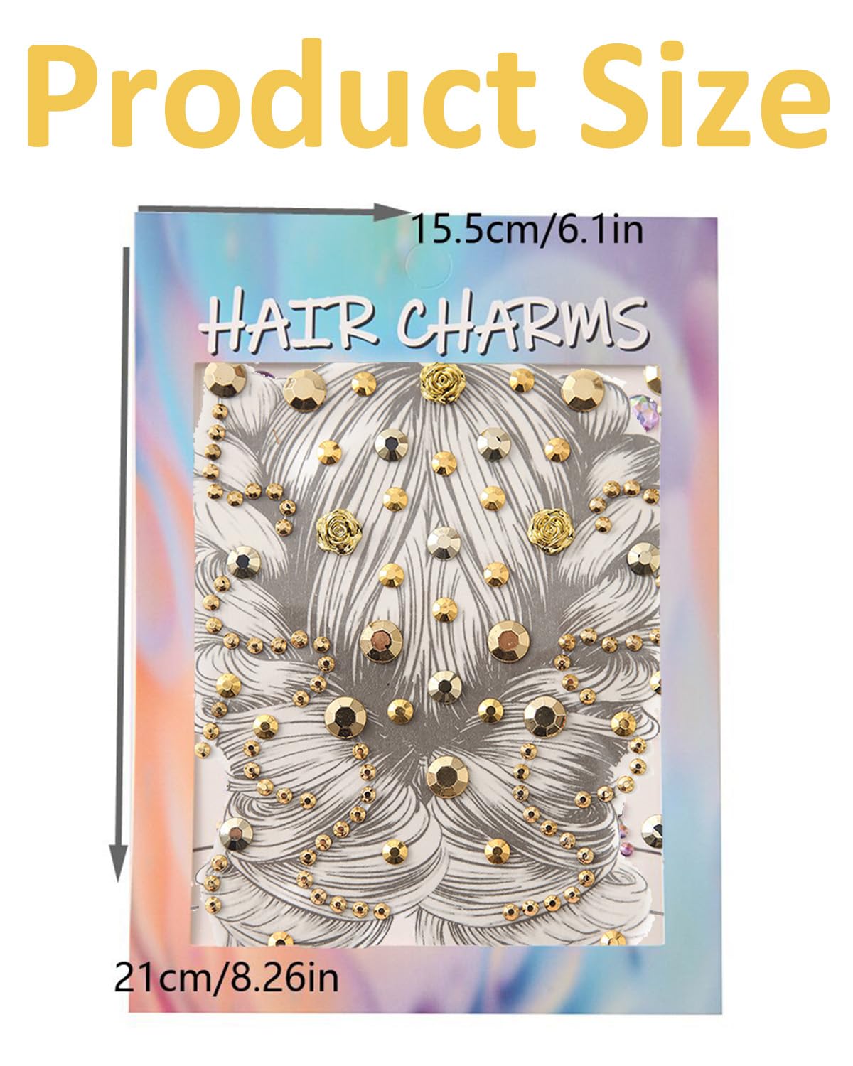 Durable and Long-Lasting Material: Crafted from high-quality materials, our hair stickers for decoration are designed to last. The gold rhinestone stickers retain their brilliance and hue, ensuring that your hair embellishments stay eye-catching and captivating through multiple uses.
