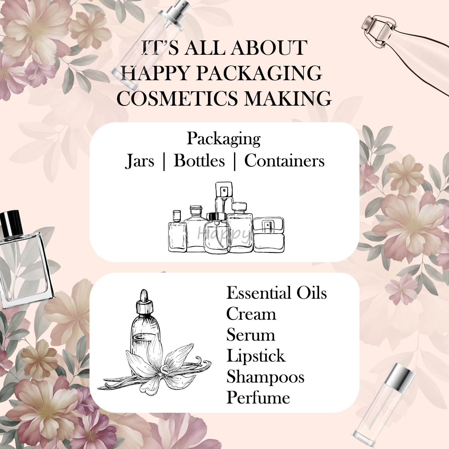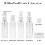 What’s in the box- 4 x 50ml Pet bottles white, 1 x 50ml spray bottles black, 1 x 50ml Disktop-cap bottles black, 1 x 50ml Cream Pump 1 x 50 ml Lotion Pump 2 x 10g cream jars black, and and 1 x FTC cap only 1-waterproof bag White.