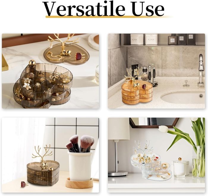 🦌 EASY TO USE-Our Jewelry Organizer is Designed with Rollers, Three Layers Can Be Opened at the Same Time, Easy to Take out the Desired Jewelry. Dustproof Cover Design Can Keep Away from Dust and Water to Avoid Dust and Water Damage, Easy to Clean. at a Glance, It is Very Easy to Use and Can Save Space.