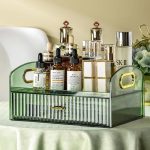 Space Saving: The size of the makeup tray is 26L x 18.2W x 12.8H cm, suitable with 1 storage drawer cosmetics, skin care products, perfume, lipsticks, brushes, lotions, moisturizer, facial mask, nail polishes, eyeliners, eye shadow palette or other small items you need in daily life.