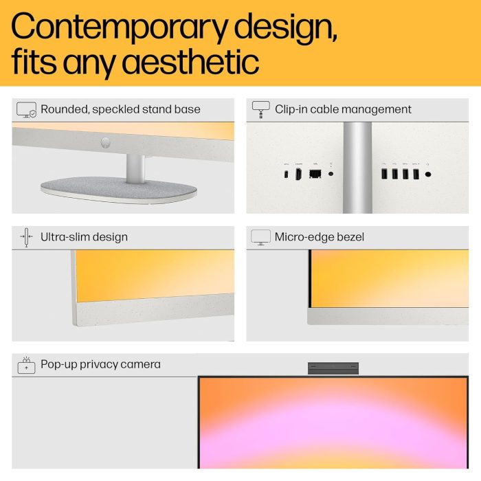 Features: Webcam: HP True Vision 1080p FHD IR tilt privacy camera with temporal noise reduction and integrated dual array digital microphones|Audio Features: Dual 2 W speakers Networking: Realtek RTL8852BE Wi-Fi 6 (2×2) and Bluetooth️ 5.3 wireless card (supporting gigabit data rate)| Keyboard: HP 710 White Wireless Keyboard and mouse combo
