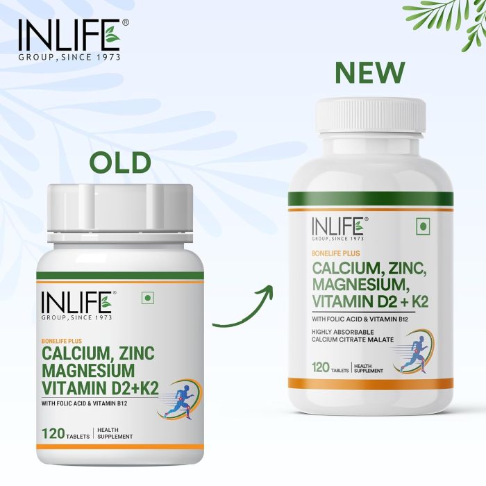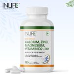 INLIFE Calcium Magnesium Zinc Vitamin D and K2 Supplement is a vegetarian supplement in one easy to swallow tablet. It may support bone, muscle, and nerve health.