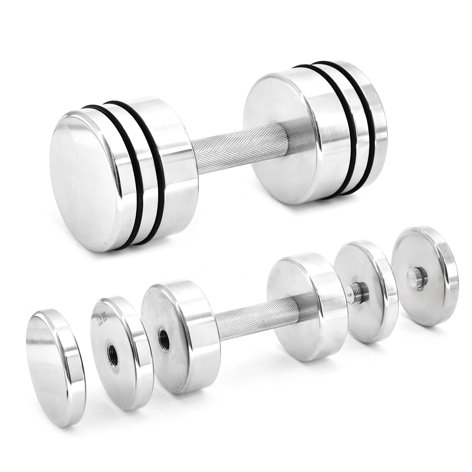 SUITABLE FOR HOME USE: Convenient due to its small size, easy storage, and ability to be placed upright. It is made of steel without plastic wrap and will not emit unpleasant odors, which would usually affect the mood of your exercise. The minimalist shape and highly polished surface give people the feeling of artwork in the home. The attached rubber rings can be easily installed in the groove of the dumbbell to avoid abrasions to the floor.