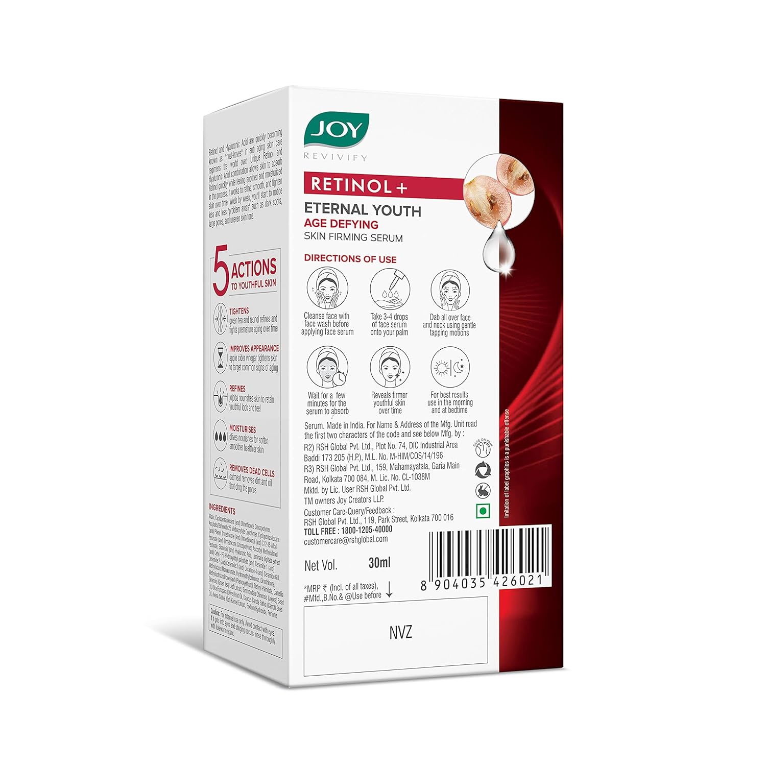 It’s never too late to say hello to retinol! A retinol fan or a newbie, you can try the new Joy REVIVIFY Retinol + Eternal Youth Age Defying Skin Firming Serum for skin that radiates with health and sheer happiness. Infused with the goodness of Hyaluronic and Ceramides, you can fall back on this elixir for firmer, younger looking skin.