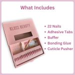 Don’t want to get stuck with the nail art for too long? KLOSS BEAUTY Press on nails will help you switch styles in minutes and that too in the comfort of your home. KLOSS BEAUTY nails are gel-finished and UV-treated which makes them Long-lasting and reusable, and gives you an instant Salon-like manicure at half the price. They come in various shapes & lengths and in a set of 24 nails so as to avoid any measurement issues. They fit perfectly on the nail bed and are very comfortable on Natural nails We provide a long-lasting Bonding Glue complimentary with every set along with a mini manicure kit and a storage box. Please remove your nails with care and use them multiple times.