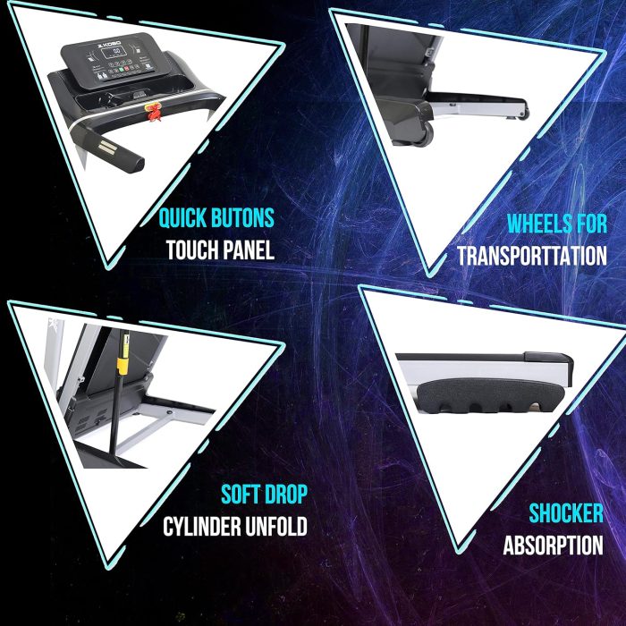 Display Type: 4 LED Screen ||Tech Feature:Time, Speed,Distance, Calorie, Pulse, Fat Measure||Bluetooth Connectivity : Connect your mobile with Treadmill through Zwift APP for Tracking Exercise.