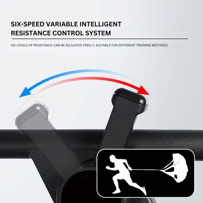 ADJUSTABLE RESISTOR: The 6-level adjustable resistor is designed for intense cardio training, simulating the resistance generated when running with a parachute. The resistance level increases with increase in your running speed.