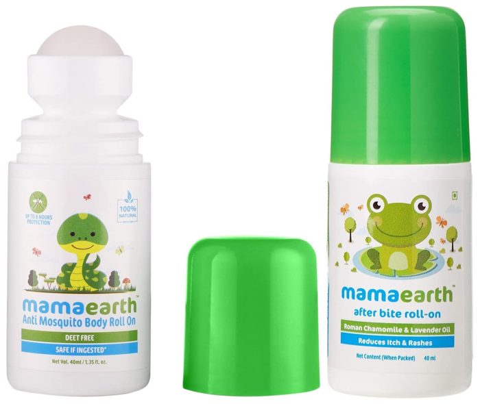 Mamaearth After Bite Roll On for Rashes & Mosquito Bites with Lavander & Witchhazel, 40mlItching after an insect bite can be really painful and irritating. Hi! I am a 100% natural blend of essential oils for stings and insect bites, with no ammonia, alcohol, preservatives, mineral oil or chemicals. I am an easy to use roll on with the most effective ingredients to reduce itching. I have chamomile, lavender, calendula and peppermint oil which are known home remedies against insect bites and stings. I have anti-inflammatory properties that provide relief from after bite itching. I am safe to be applied on the sensitive skin of new born babies as well.Mamaearth Natural Anti Mosquito Body Roll On, 40mlHi i am mamaearth’s 100 percent natural anti mosquito body roll on. Easy and convenient to carry, i repel mosquitoes that may transmit chikungunya, dengue and malaria, for up to 8 hours. With a blend of natural citronella oil, lemongrass oil and lemon oil i am a natural way to keep mosquitoes away. I am dermatologically tested to be safe on baby’s skin and do not contain any harmful chemicals like deet and alcohol.