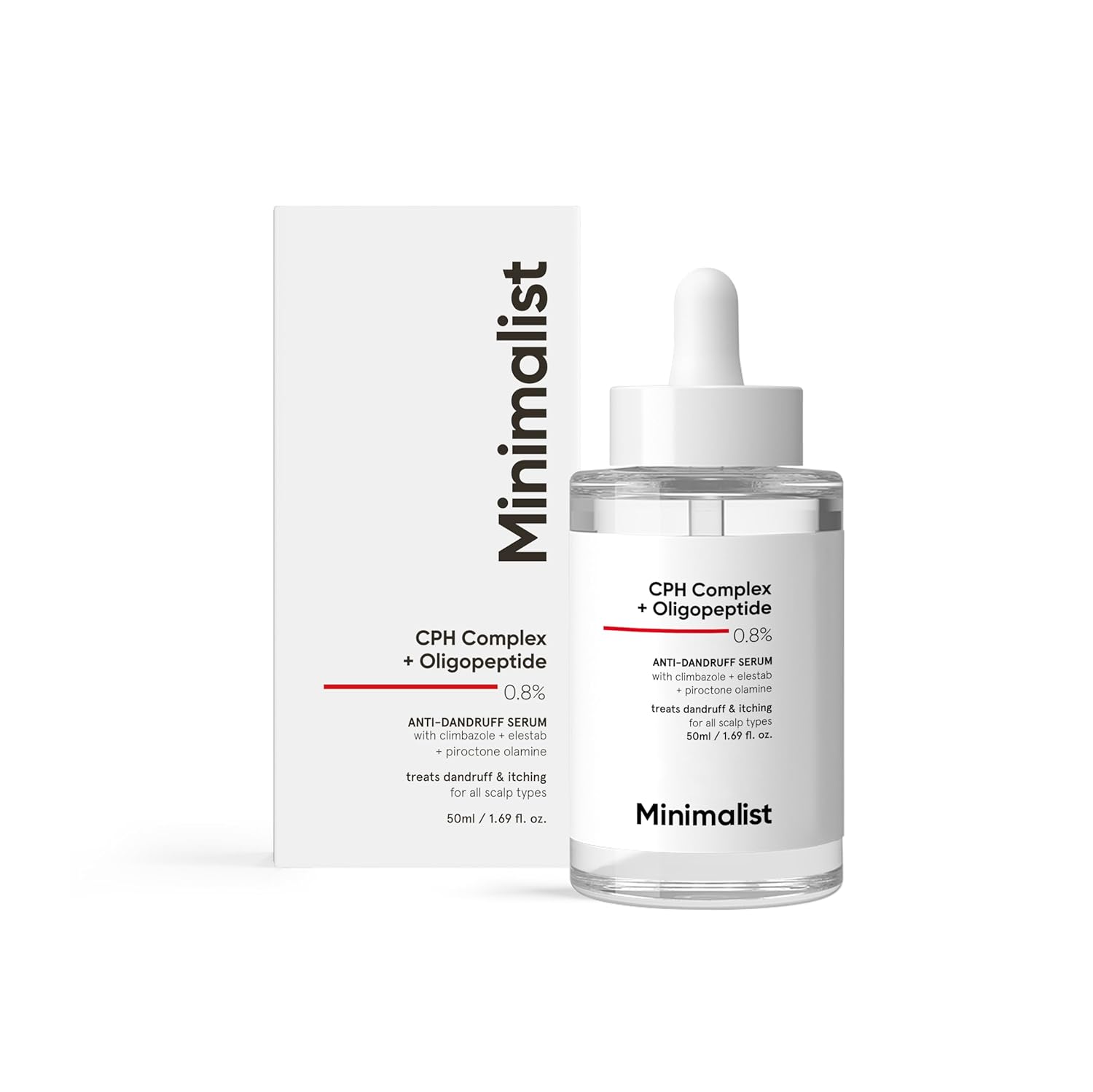 Minimalist CPH Complex + Oligopeptide 0.8% Anti-Dandruff hair serum is a comprehensive solution which targets dandruff & itchy scalp. This new technology works at the core with a potent trio of anti-dandruff agents that are proven to tackle the root cause of dandruff by inhibiting the growth of dandruff-causing fungus. This fast-absorbing, non-greasy formula also contains ingredients to control scalp oiliness without drying the scalp & ensuring optimal hydration. With consistent use, the serum provides targeted relief from dandruff, leading to itch free, nourished & healthy scalp.