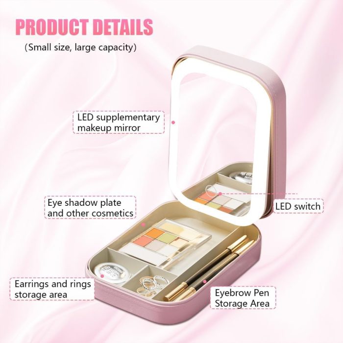 👜【Organized & Beautiful】- Store your various mini skin care products and cosmetics in this makeup case with a lighted mirror. It has a handle for easy portability and a practical box design that makes your desktop more tidy and beautiful. You can also use it as a convenient dressing table anywhere you go.