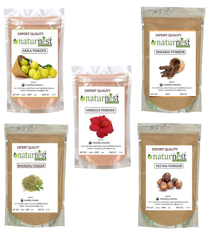Naturenest Amla, Reetha, Shikakai Bhringraj Hibiscus Combo powder Pack for Hair |hair pack powder combo |hair care products |reetha amla shikakai combo powder |natural products for hair |products for hair |hair Growth 100g each = 500gm