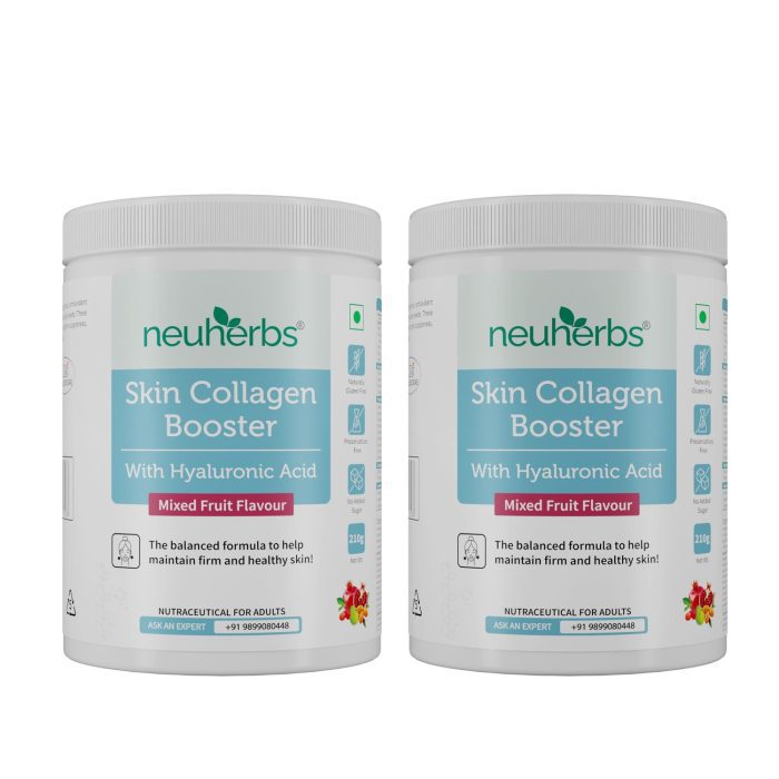 Neuherbs Skin Collagen Booster offers goodness of collagen boosting ingredients like vitamin C, Spinach & hyaluronic acid that helps promote natural collagen production & skin firmness.
